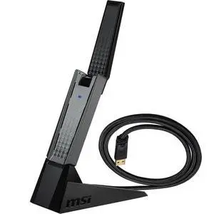 MSI BE6500 WiFi 7 USB Adapter - WLAN up to 2880 Mbps (6GHz, 5GHz, 2.4GHz Wireless), USB 3.2 Gen 1, MU-MIMO, 2X High-Gain Tri-Band Antennas, Beamforming, WPA3 - Cradle Included