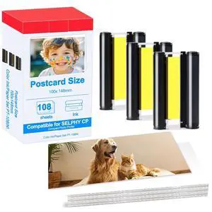 Elfatech Compatible for Selphy KP-108IN KP108 3-Pack Color Ink Cartridges and 108 Sheets Paper Compatible for Canon Selphy CP1200 CP1000 CP910 CP900 CP810 Printer