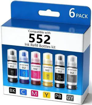 oranysty T552 Refill Ink Bottles Compatible with Epsn 552 Ink Refill Bottles Use for EcoTank Photo ET-8550 ET-8500 PrinterPB C M Y GY BK 6 Color Cyan/Magenta/Yellow/Photo Black/Gray Ink Bottles