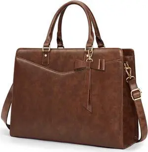 Laptop Bag for Women 15.6 inch Laptop Tote Bag Waterproof Leather Computer Bag Large Lightweight Briefcase Professional Business Office Work Bag, Beige Brown