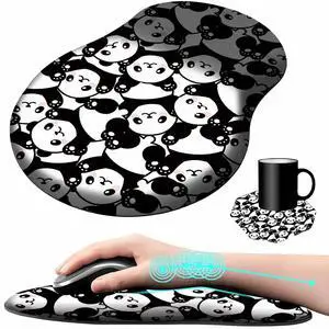 Mouse Pad with Wrist Support Gel Cute Panda Pattern Design Ergonomic Gaming Mousepad with Wrist Rest for Laptop Computer Home Office Working Mouse Mat + A Cute Coffee Pad