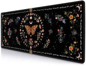 SXCKANG Gothic Moth Desk Pad Mat, Black Orange Large Mousepad, Moon Phases Desk Matt for Desktop, Suitable for Work, Gaming, Office, Home, Computer Accessories, 31.5 X 11.8 in, Floral Plant Aesthetic
