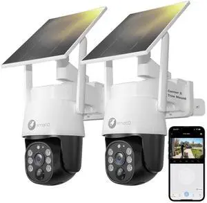 xmartO 2-Pack 4MP QHD Wireless PTZ Solar Security Camera, WiFi 6 5G Dual Band, Wire-Free Easy Installation, No Monthly Fee, Outdoor/Indoor Home Use, Wall/Ceiling/Tree/Pole/Corner Mount