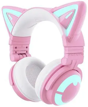 YOWU Cat Ear Headphones CE, Wired/Wireless Pink Gaming Headsets with Seamless Live Sound Experience for PC/PE/Switch/PS4/PS5, Built-in Mic & Customizable RGB Light Effect for Anime Lovers