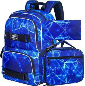 FTJCF Laptop Backpack, 17 Inch School Bag College Bookbag with Lunch Bag Set, Water Resistant Aurora Backpacks for Teens Boys Man Students (Blue)