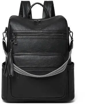 Shrrie 15.6 inch Laptop Backpack for Women,Large Leather Backpack Purse,Travel,Carry on,Water Resistant Casual Laptop Backpacks,College Backpack,Work Backpack for Women,Two-tone Black