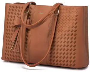 LOVEVOOK Laptop Tote Bag for Women 15.6 Inch Waterproof PU Leather Computer Bags Women Business Office Work Bag Briefcase,Brown