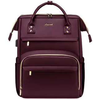 LOVEVOOK Leather Laptop Backpack for Women 15.6 inch, Travel Purse with USB Port, Wine Red