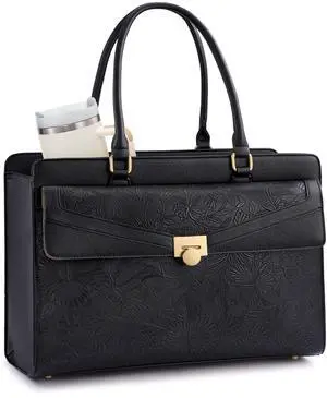 LOVEVOOK Laptop Tote Bag for Women - PU Leather Vintage Work Tote Bag,Waterproof Business Teacher Bag with Large Cup Holder