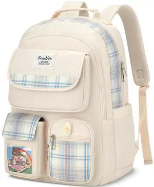 YAMTION Girls Backpack for School,Aesthetic Backpack Bookbag with Laptop Compartment for Middle School Students,Mochila para Ninas,Beige
