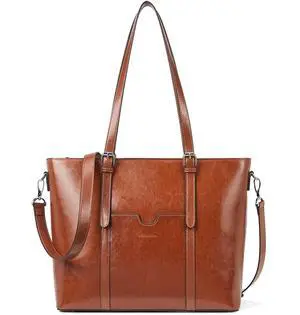 BOSTANTEN Womens Leather Laptop Tote Office Shoulder Handbag Vintage Briefcase 15.6 inch Computer Work Purse Brown