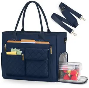 RAINSMORE Teacher Tote Bag with Insulated Lunch Compartment 15.6 inch Laptop Bag for Women Lightweight Work Bags Nurse Bags Professional Briefcase Computer Handbag for Office, College, Dark Blue