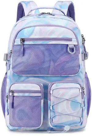 Lohol Multi-Pocket Backpack for Travel College, Heavy Duty Big Bookbag with 15.6 inch Laptop Compartment (Purple Galaxy