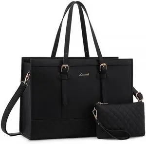 LOVEVOOK Women's 15.6 inch Laptop Tote, Waterproof PU Leather Computer Work Bag, Large Capacity Business Office Tote Black