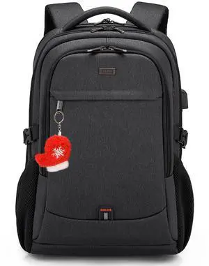 DUSLANG 17 Inch Laptop Backpack for Travel Water Resistant College Backpack for Men Women Laptop Bag with USB Charging Port Key Hanging Ornament Christmas Decorative,Black