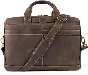 Leather Laptop Messenger Briefcase Bag for Men - Vintage Laptop Satchel with Adjustable Strap - Fits 16" Laptop Office, Travel & Work-Brown