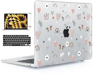 ICEKEE Compatible with MacBook Air 15 inch M5 2026 2025-2023 Release M4 M3 M2 A3448 A3241 A3114 A2941, Plastic Hard Shell Case & Keyboard Cover & Screen Protector, Heart-Bow