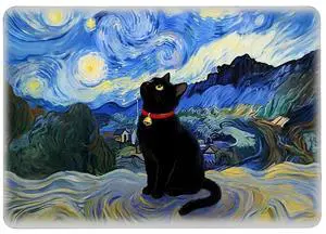 WANKBLC Compatible with MacBook Air 15 Inch 2023/2025 Version of M2 A2941/M4 A3241 Plastic Black Computer Case for Girl Boy Fashion Pattern Cute Black Cat Starry Night Sky Moon Star