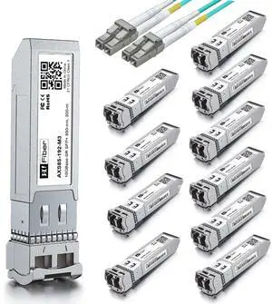 10 Pack 10G MultiMode SFP+ LC Module with 2m OM3 LC to LC Fiber Patch Cable, 10GBase-SR SFP+ Fiber Transceiver, MMF 850nm, 300m, DDM, Compatible with Cisco SFP-10G-SR, Meraki, Ubiquiti