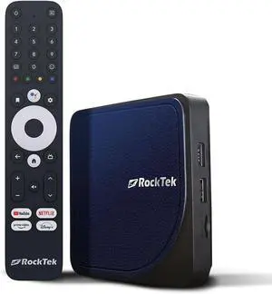 RockTek G2 Chromecast with Android TV 14 4K UHD Streaming Player, HDR10+, Dolby Vision & Atmos, Bluetooth 5.0 & Wi-Fi 6, Remote and Voice Control, GeForce Now Cloud Gaming, Google Assistant Built-in