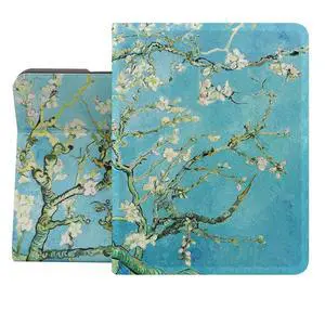 Berkin Arts Compatible with iPad Mini 4th/5th Generation Case (7.9 Inch) Case 2019 2018 2017 2016 2015 Folio Case Premium Leather Cover Cloisonnism Green Flower Floral (Almond Blossom by Van Gogh)