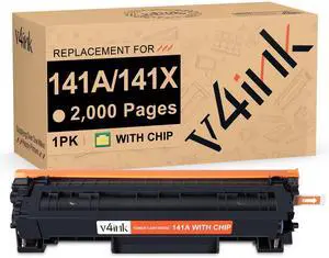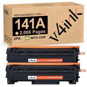 v4ink 141A 141X Toner Cartridge (with CHIP) Replacement for HP 141A W1410A W1410X 141X Black Toner Cartridge use for HP LaserJet M110w MFP M139w M140w Priner, High Yield 2,000 Pages-2 Pack