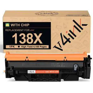 v4ink 138X 138A Toner Cartridge (with CHIP) Replacement for HP 138X 138A W1380A W1380X Black High-Yield Toner Cartridge Work with LaserJet Pro 3001dw MFP 3101fdw 3101sdw Printer, 1 Pack