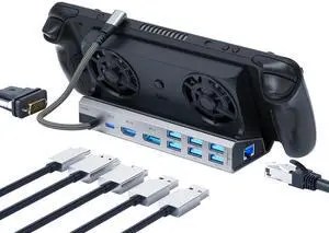 Legion Go/ROG Ally/Steam Deck Dock - 14-in-1 Docking Station Dual Cool Fans Steam, 4K@60Hz, 6 USB Ports, VGA, DP, 100W PD Charging, Gigabit Ethernet Fit for Steam Deck