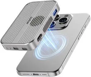 Jorkar Magnetic Dock, M.2 NVMe SSD Enclosure & USB C 3.2 Hub Docking Station 10Gbps with Cooling Fan for iPhone 17/16/15 Pro/Pro Max/Plus, Support SSD Size 2230/2242/2260/2280 B+M M-Key