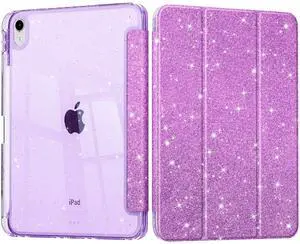 Tuiklol Sparkly Case for iPad Air 11 Inch 7th/6th Gen 2025 2024 & iPad Air 10.9 Inch 5t /4th Gen 2022 2020,Built in Pencil Holder with Clear Back Shell Cover Trifold Auto Wake/Sleep, Sparkly-Purple