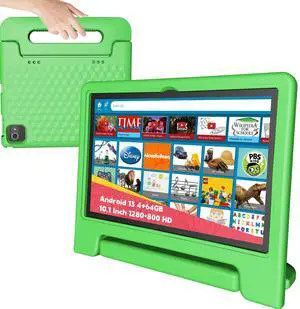 NOBKLEN 10.1 Inch Android Tablet for Kids, Teens, Octa-Core 8GB RAM 64GB Storage (1TB Expandable), HD IPS Display, Parental Control, Shockproof Case, WiFi, Bluetooth, Big Battery, Green