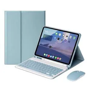 AnMengXinLing Keyboard Case for iPad Air 11 inch (M3 2025/M2 2024) with Mouse, Case for iPad Air 5th/4th Gen with Keyboard Cover with Pencil Holder, Sky Blue