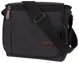 Modoker Messenger Bag for Men Women, 13 Inches Laptop Satchel Bags, Canvas Shoulder Bag with Bottle Pocket, Black