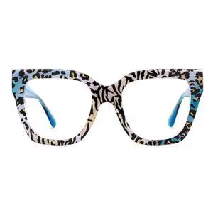 Zeelool Square Blue Light Glasses for Women Trendy Thick Frame Fake Eyeglasses Stylish Blue Designer Full Eyewear Anti Eyestrain JGA813402-01B