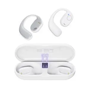 PSIER Open Ear Bluetooth Headphones, 40 Hours Playtime Bluetooth 5.3 Wireless Sports Earbuds with Digital Display Charging Case, White