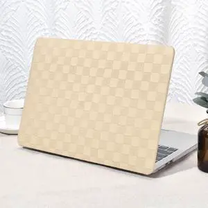 Seorsok Compatible with MacBook Air 13.6 inch Case M4 M3 M2 2025 2024-2022 Release A3240 A2681 A3113,Elegant Leather Plastic Leather Hard Shell Case&Keyboard Cover,Khaki PVC Grid No Logo Cutout