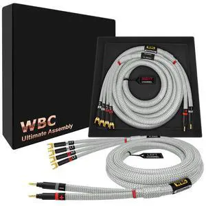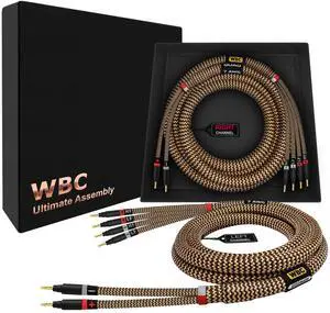 WORLDS BEST CABLES 10 Foot Ultimate - 9 AWG - Ultra-Pure OFC - Premium Audiophile HiFi Bi-Wire Speaker Cable Pair with Eminence Gold Banana (x2) & Spade (x4) Plugs & Silver Tweed Jacket