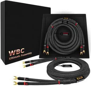 WORLDS BEST CABLES 6 Foot Ultimate - 9 AWG - Ultra-Pure OFC - Premium Audiophile HiFi Speaker Cable Pair with Eminence Spade Plugs & Carbon Tweed Jacket