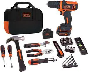BLACK+DECKER 12V MAX Drill & Home Tool Kit, 60-Piece (BDCDD12PK)