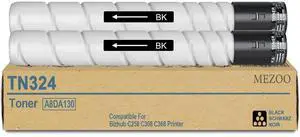 MEZOO TN-324 TN324 Black Toner Cartridge Compatible for TN324K A8DA130 Toner for Konica Minolta Bizhub C258 C308 C368 Printer(2-Pack, 28,000 Pages)