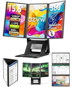 DZVW Quad Laptop Screen Extender 15.6" FHD 1080P Quad Monitor, Three Screen Combine into One Giant Canvas with 1 Cable, DriverPower Required, Compatible with Wins & Mac(M1/M2/ M3)