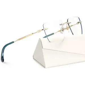 ANYLUV Rimless Cat Eye Blue Light Glasses Woman, Stylish Computer Blue Light Blocking Glasses with Lightweight Metal Temples