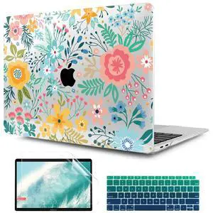 TWOLSKOO Case for MacBook Air 13.3 Inch (Old Version 20182021, Models: M1 A2337, A2179, A1932) Hard Shell Case with Screen Protector & Keyboard Cover, Abstract Flower