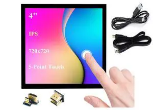 UeeKKoo 4inch HDMI LCD Square Capacitive Touch Screen Compatible with Raspberry Pi 5/4B/3B+/3B/2B/Zero/Zero W//Zero 2W/Jetson Nano/Windows 11/10/8.1/8/7, 720x720 Resolution, IPS Display, USB-C Port
