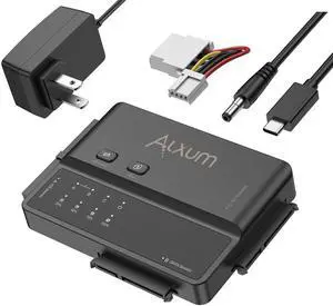 Alxum 3-in-1 USB C to SATA & IDE Adapter with Hard Drive Cloning - 5Gbps High Speed Data Transfer, Supports Simultaneous Reading of Two DrivesSATA III & IDE 133 HDD/SSD Included 12V2A Power Adapter