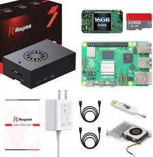 iRasptek Starter Kit for Raspberry Pi 5 16GB RAM- Pre-Loaded with 128GB Edition Pi OS (Aluminum Case)