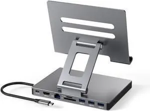 iPad Pro USB C Hub Stand, 9 in 1 Adapter for iPad Air M5 M3 M4 13 12.9 Inch Docking Station 4K 60Hz HDMI, RJ45 Ethernet, SD/TF Card Reader, 3 USB 3.0, 3.5mm Audio, iPad Accessories Samsung Tablet Dock