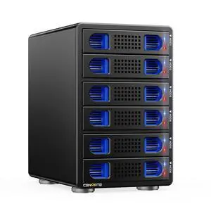 CENMATE 6 Bay Hard Drive Enclosure with Cooling Fan for 2.5/3.5" SATA HDD/SSD with USB A/C 3.2 Gen 2, Support Hot Swappable, Daisy Chain Expansion, Tool-Free HDD Enclosure, DAS(NO RAID/NAS)