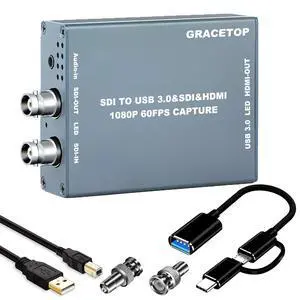 SDI Capture Card with SDI Loop Out/HDMI, SDI to HDMI Converter, 1080P60fps SDI to USB3.0 Audio Video Capture Device with SDI Loopout USB Video Record for SDI Camera Live Streaming