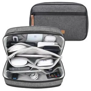 Lacdo Electronic Organizer Accessory for MacBook Charger, Cables, Power Bank, Hard Drive, Travel Cords, SD Card, Water-resistant Storage Bag with Card Slots for Memory Card, Gray